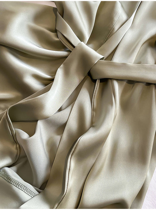 Saten uzun kollu dut ipeği gecelik
